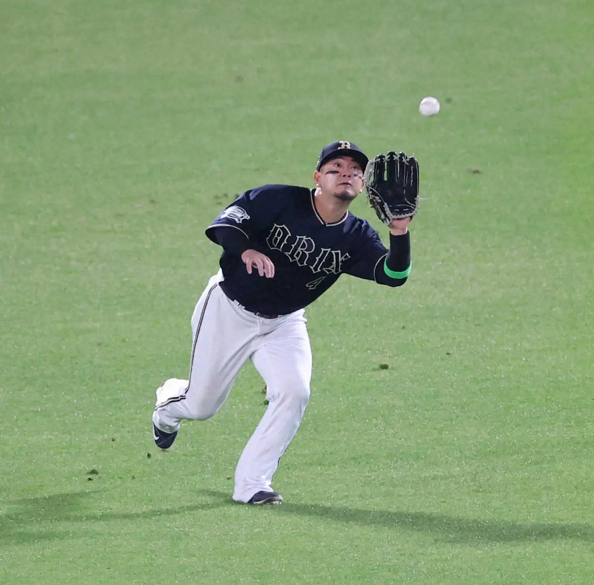 <神・オ>4回2死、ノイジーの右飛を捕球する森(撮影・平嶋 理子)