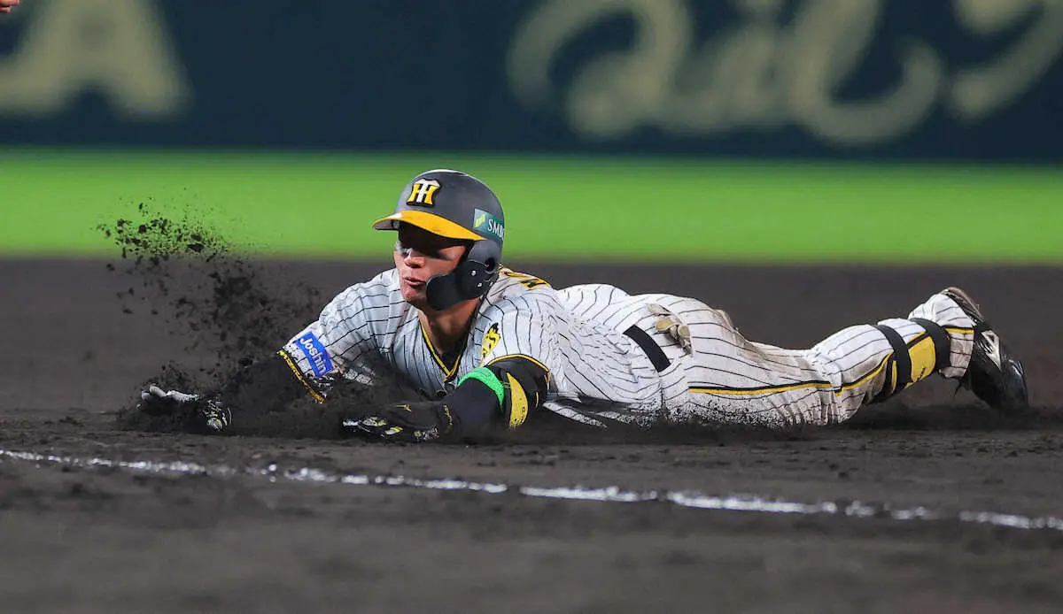 2点を追う8回、近本の適時打で1点を返しなおも1死二、三塁から相手3番手・宇田川の低め直球にバットを合わせると、打球は左中間を真っ二つ。2者生還の逆転三塁打に三塁ベースをバンバン叩き、感情を爆発させた。