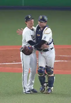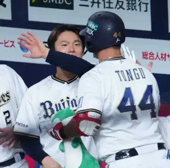 4日の試合前、山本と熱い抱擁を交わす宮城(撮影・岸 良祐)