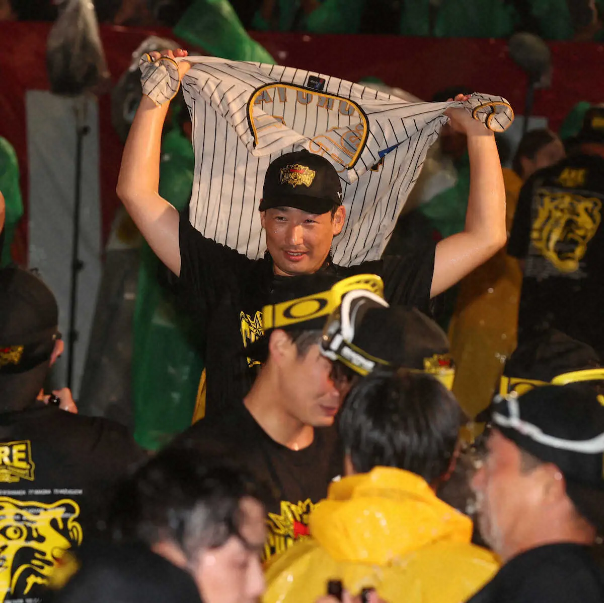 京セラドームの三塁ベンチ裏には、選手たちが特別に発注した2023年バージョンの「背番号24 YOKOTA」のユニホームが飾られていた。横田さんと同期入団の岩崎が9回2死から登板し試合を締めくくると、同じく同期入団の梅野がユニホームを手にマウンドへ。岡田監督に続いてナインの手で胴上げされた岩崎の手には背番号24が握られ、ともに舞った。ユニホームは選手たちが祝勝会場へ向かうバスにも持ち込まれ、最後まで亡き友と歓喜を味わった。