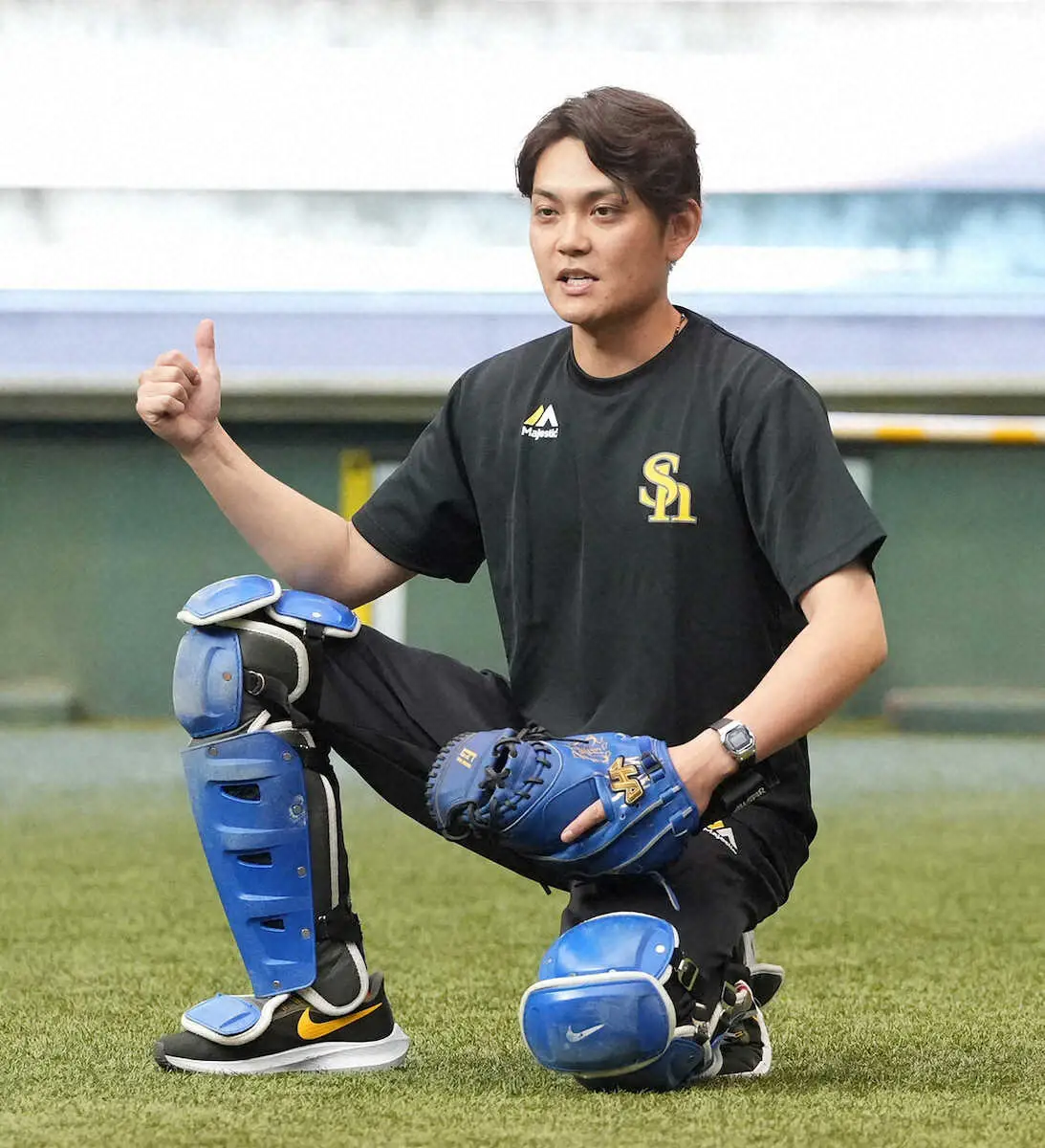 緑川キャッチングコーディネータから指導を受ける(右から)海野、谷川原、吉田、渡辺陸ら捕手陣(撮影・岡田 丈靖) Photo by スポニチ ソフトバンクに捕球革命 “フレーミング左手の法則” 「ビタ止め捕手」ユ… ギャラリーで見る この記事のフォト 2023年11月05日の画像一覧 もっと見る 2023年11月05日の画像をもっと見る