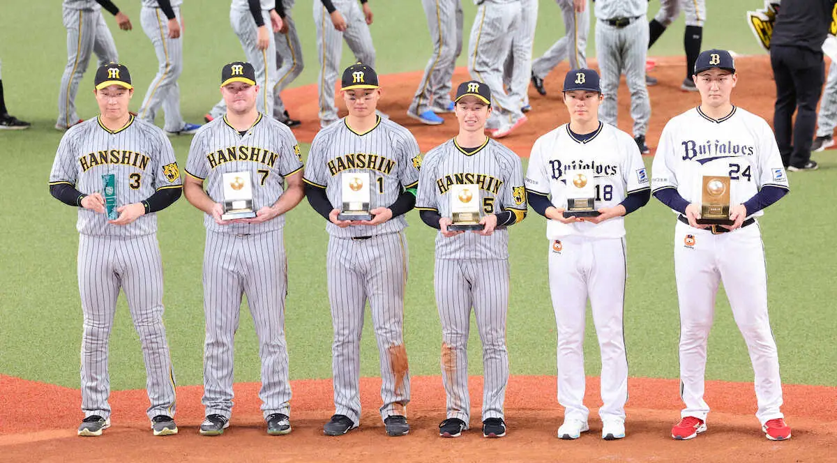 また、優秀選手賞(賞金100万円)は阪神から森下、ノイジー、オリックスから山本が選ばれ、敢闘選手賞(賞金100万円)はオリックス・紅林が選ばれた。