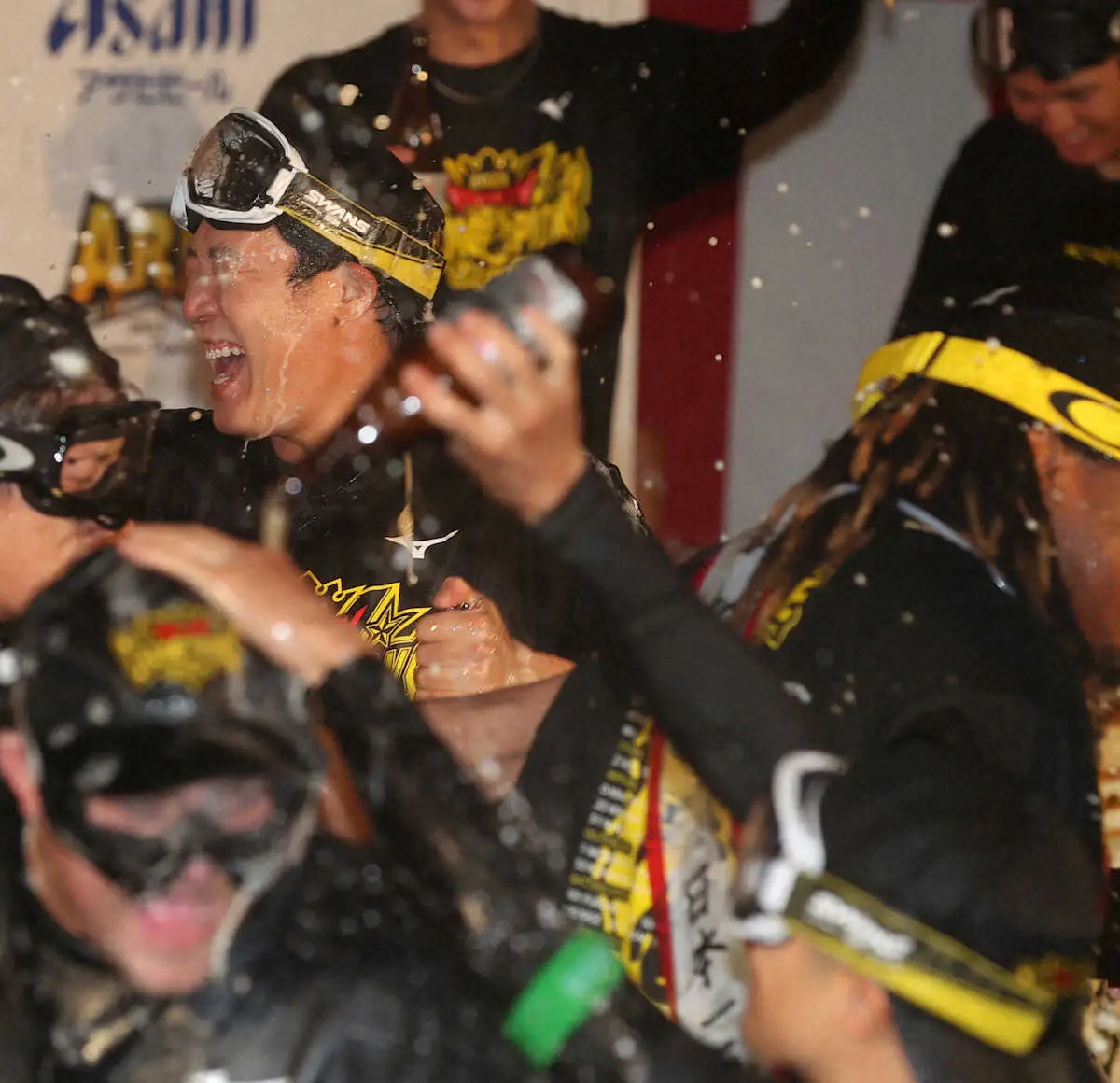 阪神日本一ビールかけ 岡田監督のゴーグル姿にネット爆笑「でかすぎ」「ほんで意味ないw」