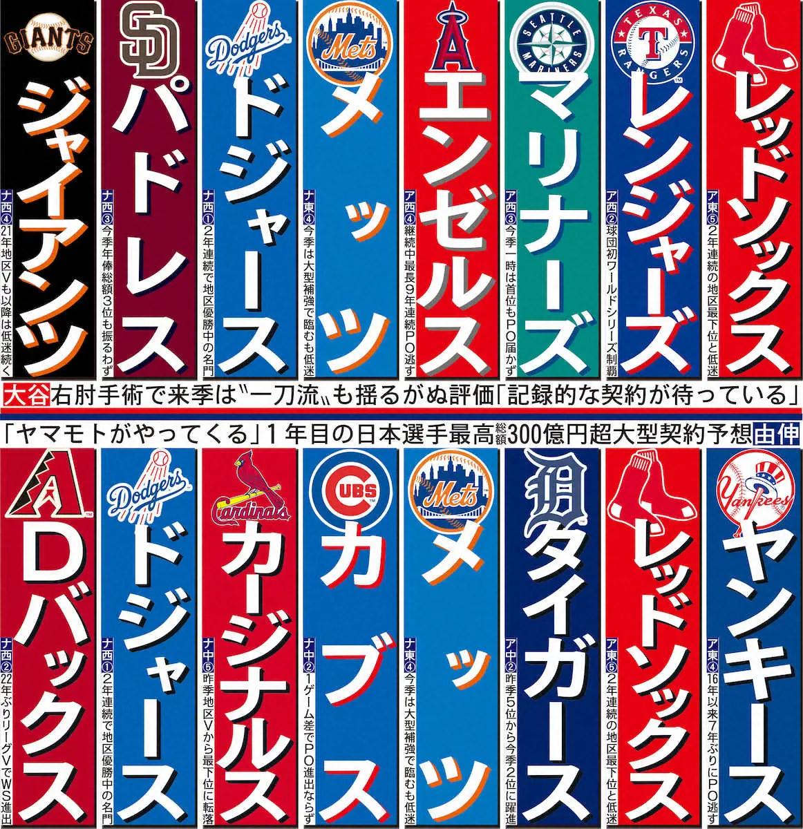 大谷翔平投手(右)と山本由伸投手 Photo by スポニチ 大谷&由伸“日本のW至宝”が今冬争奪戦の目玉 大リーグ公式サイトで獲得候… ギャラリーで見る この記事のフォト 2023年11月07日の画像一覧 もっと見る 2023年11月07日の画像をもっと見る