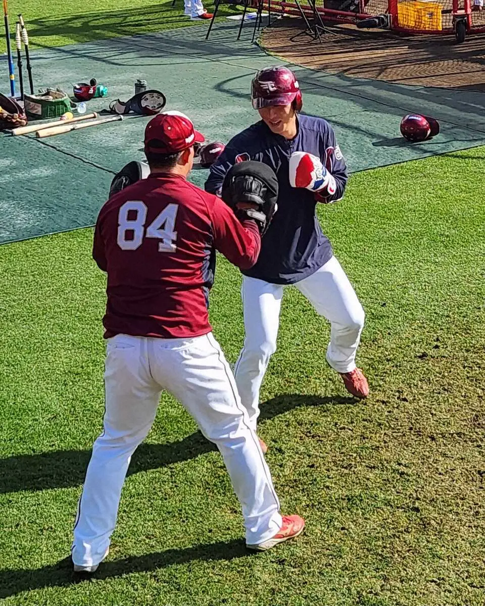 楽天キャンプの「ボクシングトレ」に選手はヘトヘト…打撃練習の合間に「ワン、ツー!」