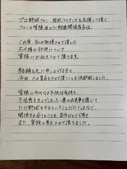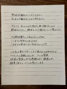 不祥事に揺れた一年。悩みや葛藤、覚悟を記し、球団に提出したコメントの直筆メモを、スポニチ本紙だけに寄せた。「社会から離れることまで考えた」というが、FA宣言により「(他球団の)声をお聞かせいただくことで自分自身を戒めることとなるのではないかとも考えた」とした。