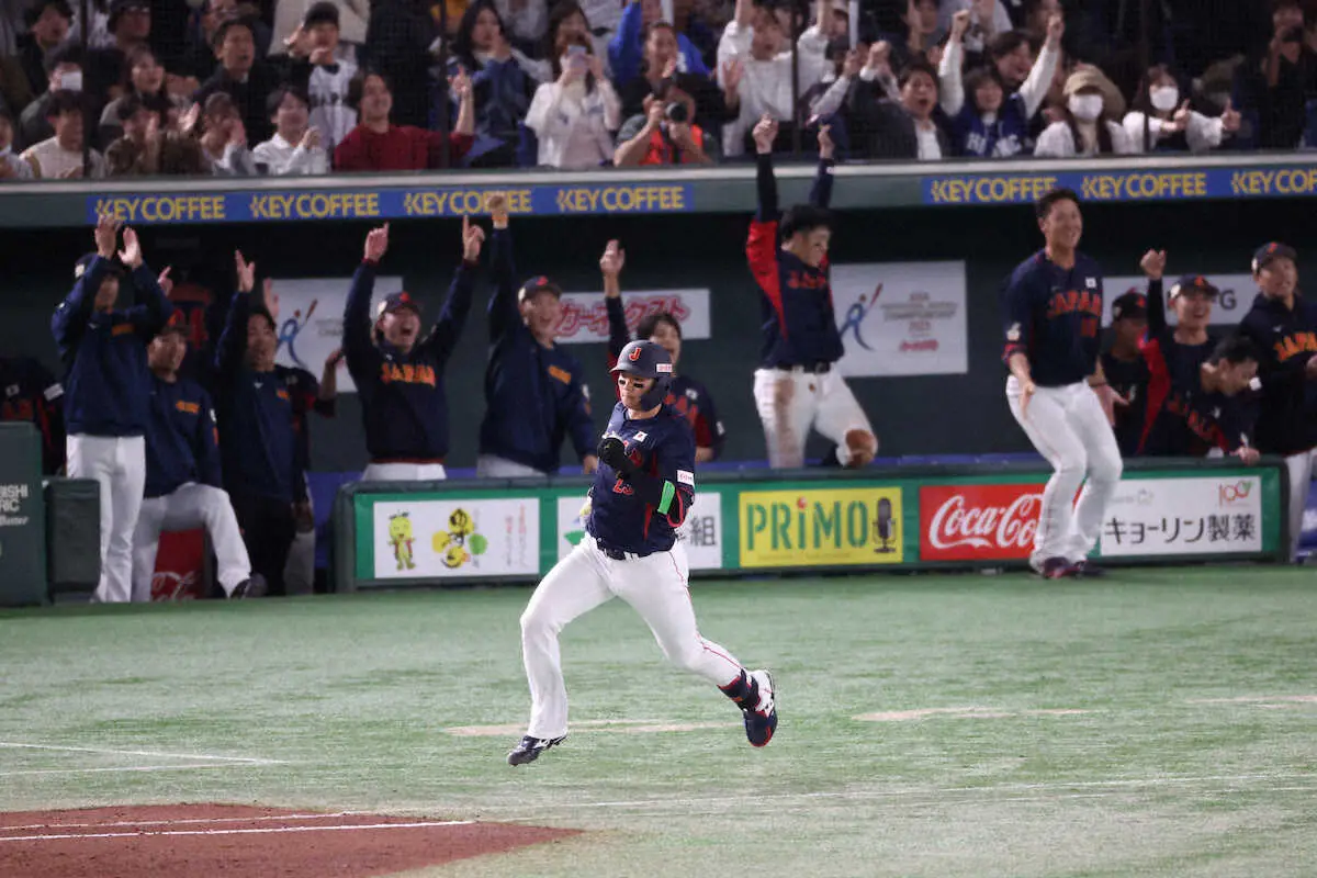 0―0で迎えた7回だ。無死一塁が盗塁失敗で1死無走者に変わった直後の2球目を強振。6回1死まで完全投球を許し、台湾で「火球男」の異名を取る同じ00年生まれの古林睿煬(グーリン・ルェヤン)の150キロを左翼席へ一直線にはじき返した。やっと歓喜が渦巻いた東京ドームでダイヤモンドを一周。「相手投手がスゴく良くて、流れを変える一本が大切だと思っていた。それが自分で良かった」と安堵(あんど)した。