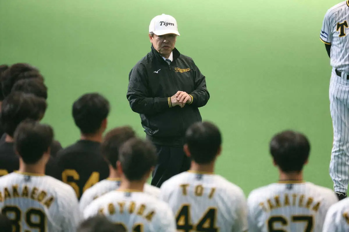 球団初の連覇を成し遂げるべく「おそらくほかの5球団は打倒タイガースということで、目の色を変えてやってくると思います。連覇するのは並大抵のことじゃなく、非常に難しいこと。選手1人1人のさらなるレベルアップが不可欠だと思います。ここにおられる皆さん方が、どれだけ1軍で戦力として活躍し、チーム力の底上げができるか」と、若手主体となっている今キャンプ参加メンバーのさらなる成長を期した。