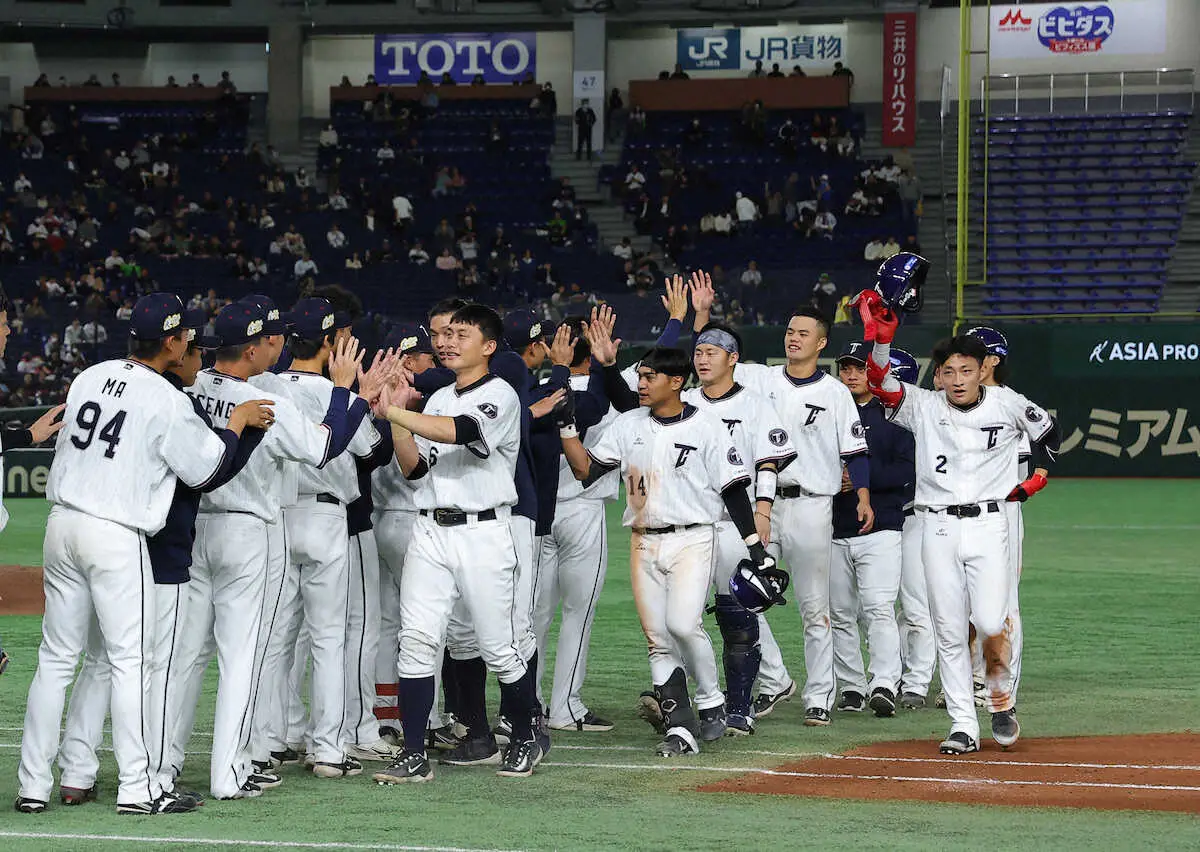 7回に2点を奪われて同点に追いつかれたが、3―3で迎えた9回、2安打で1死一、三塁の好機を作り、最後は1番・郭天信がカーブをはじき返して右越えにサヨナラ打を放った。