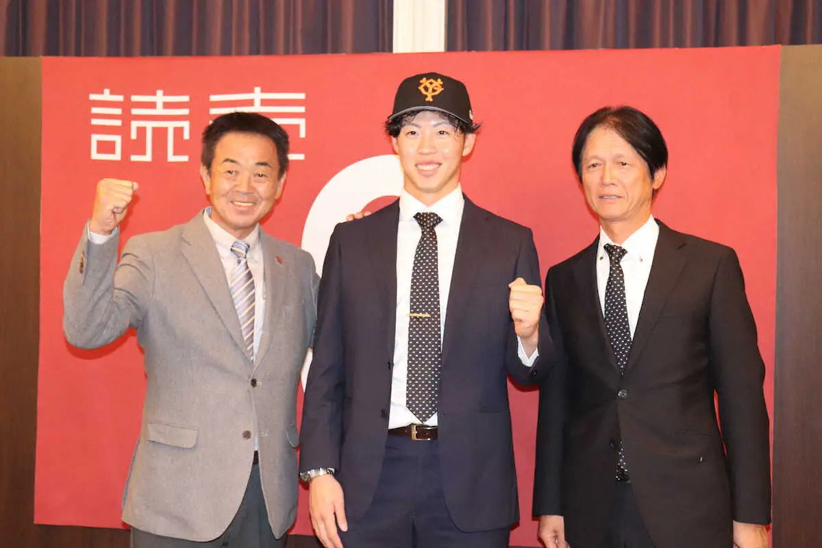 富山商時代にはU18日本代表で岡本和、岸田らとともにプレーした左腕。法大から入社5年目で指名を受けたオールドルーキーは「新人なので新人らしく明るく元気よくやることはもちろんなんですけど、自分自身のいままでやってきたことだったり、社会人でも続けてきたことをどういう環境になっても変わることなくまずはやり続けることが大事だと思う」と話し「エンジン工場で働いていたので、ジャイアンツのエンジンになれるように頑張って行きたい」と笑顔を見せた。