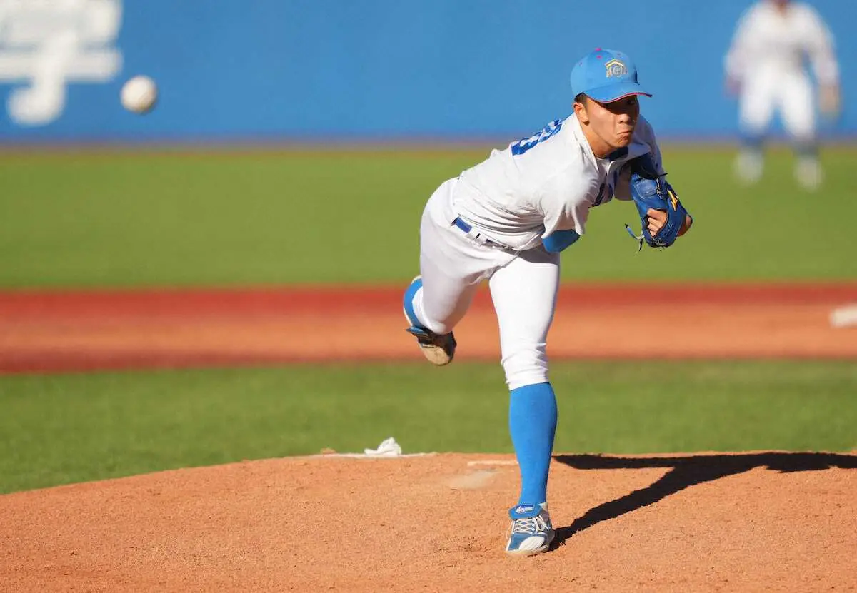 苦しかった。「自分のフォームとの闘いだった」と明かしたように序盤は制球が定まらない。6四死球は公式戦での自己ワースト。それでも富士大打線を相手に粘りリードは許さない。打っては7回1死二塁から“大学初安打”となる左前打を放つなど投打で勝利に貢献した。「超気持ちよかったです。練習してきた成果が出ました」と笑顔がはじけた。