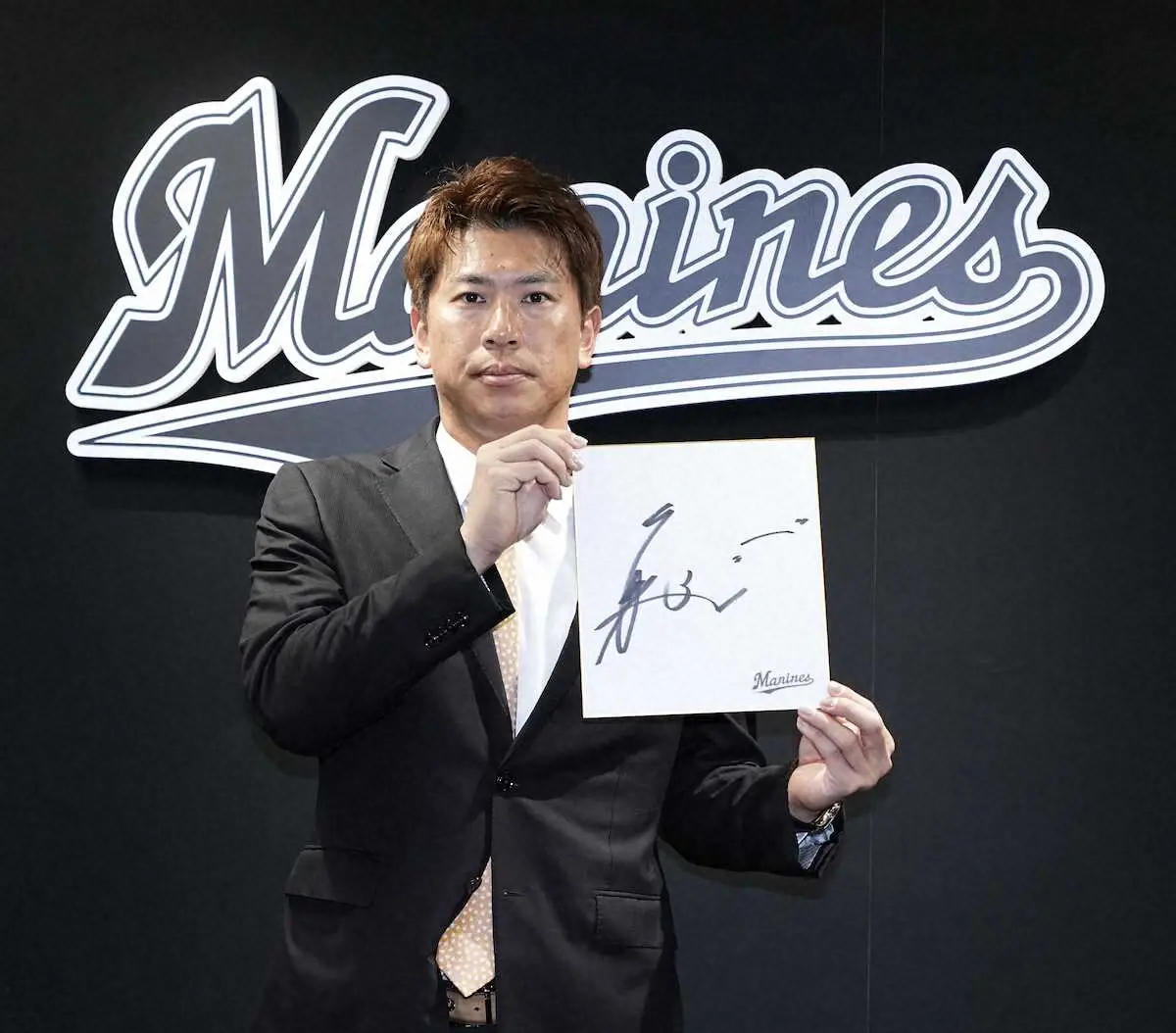 ロッテ17年目のベテラン角中がZOZOマリンで契約更改交渉に臨み、1100万円増の6600万円でサインした。