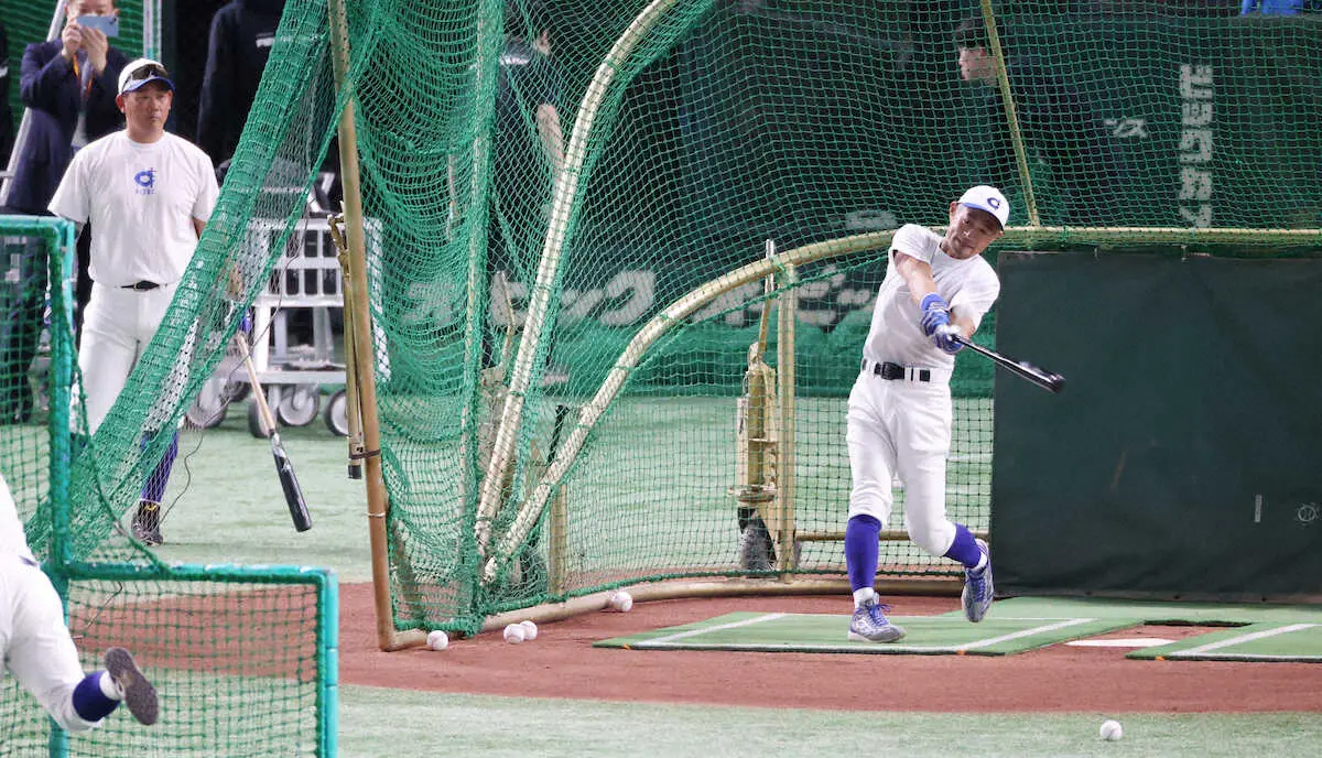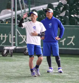 <高校野球女子選抜・イチロー選抜>練習するイチロー氏(左)と松坂氏 (撮影・白鳥 佳樹)