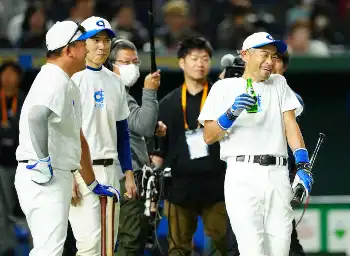 <高校野球女子選抜・イチロー選抜>試合前、松坂氏と打撃練習するイチロー氏 (撮影・白鳥 佳樹)