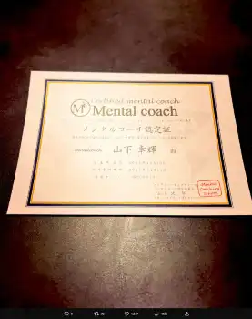 「現役を引退してからどうすればもっと活躍できたのか 復習、勉強がてらスポーツメンタルコーチの資格取得しました」と資格証をアップ。