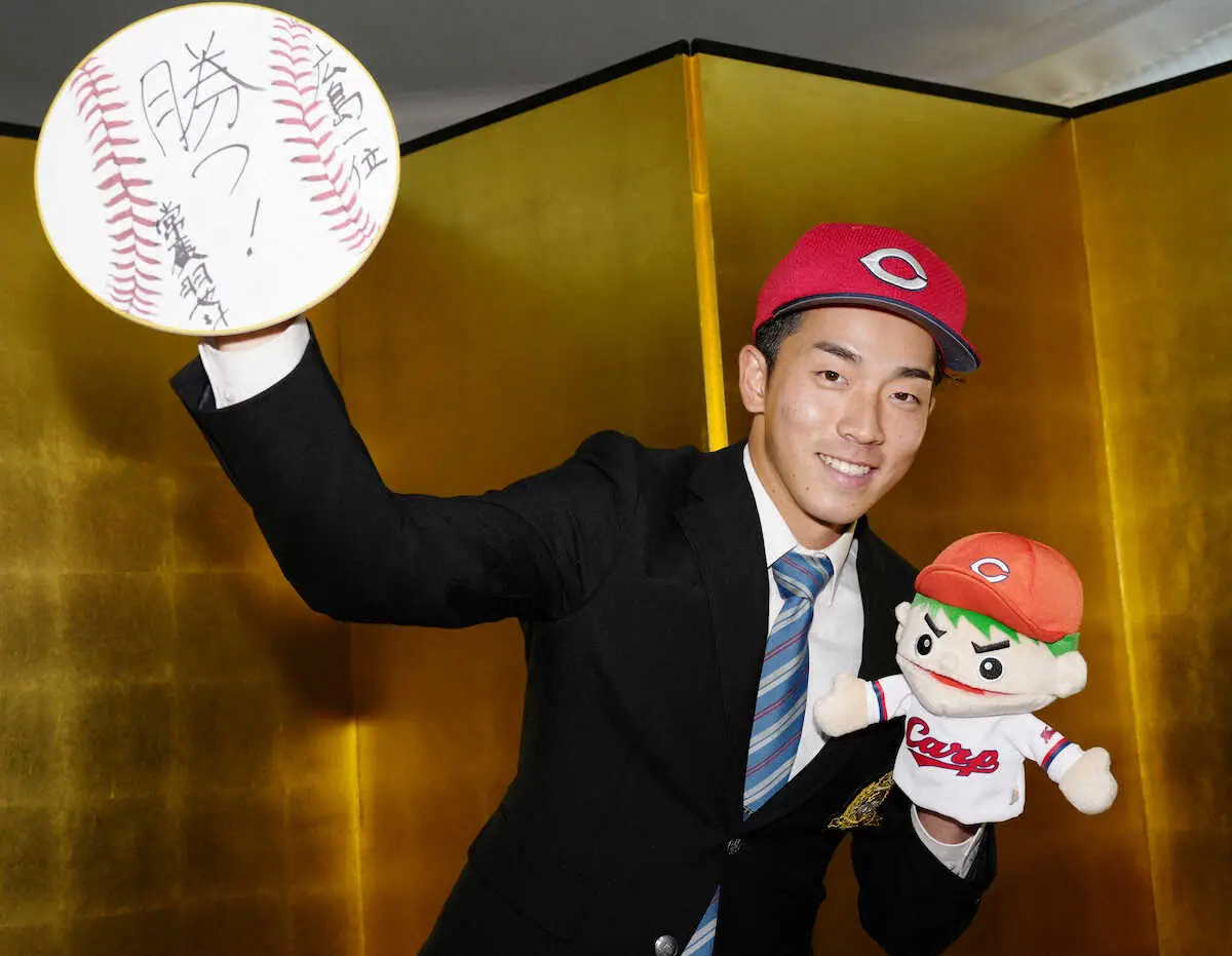 カープの未来を背負う最速155キロ右腕が、晴れやかな表情で語った。「(プロになった)実感が湧いてきた。1年目はまずは新人王を目標に頑張っていきたい。数字の目標とかはないですけど、課題を見つけて、つぶしていける投手になりたい」。飛躍のために掲げたのは5つの公約。来季のチームのキャチフレーズ「しゃ!」を体現する。