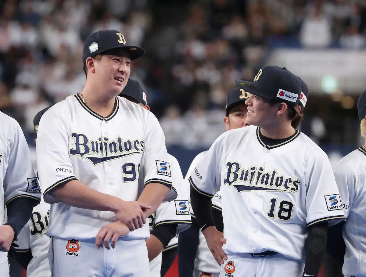 <オリックスファンフェスタ>ファンフェスタの最後をクラッカーで締めくくる山本(中央)(撮影・後藤 正志) Photo by スポニチ 山本由伸「本当に最後の日だったんで」オリファン感で感慨 英語の実力は… ギャラリーで見る この記事のフォト 2023年11月26日の画像一覧 もっと見る 2023年11月26日の画像をもっと見る