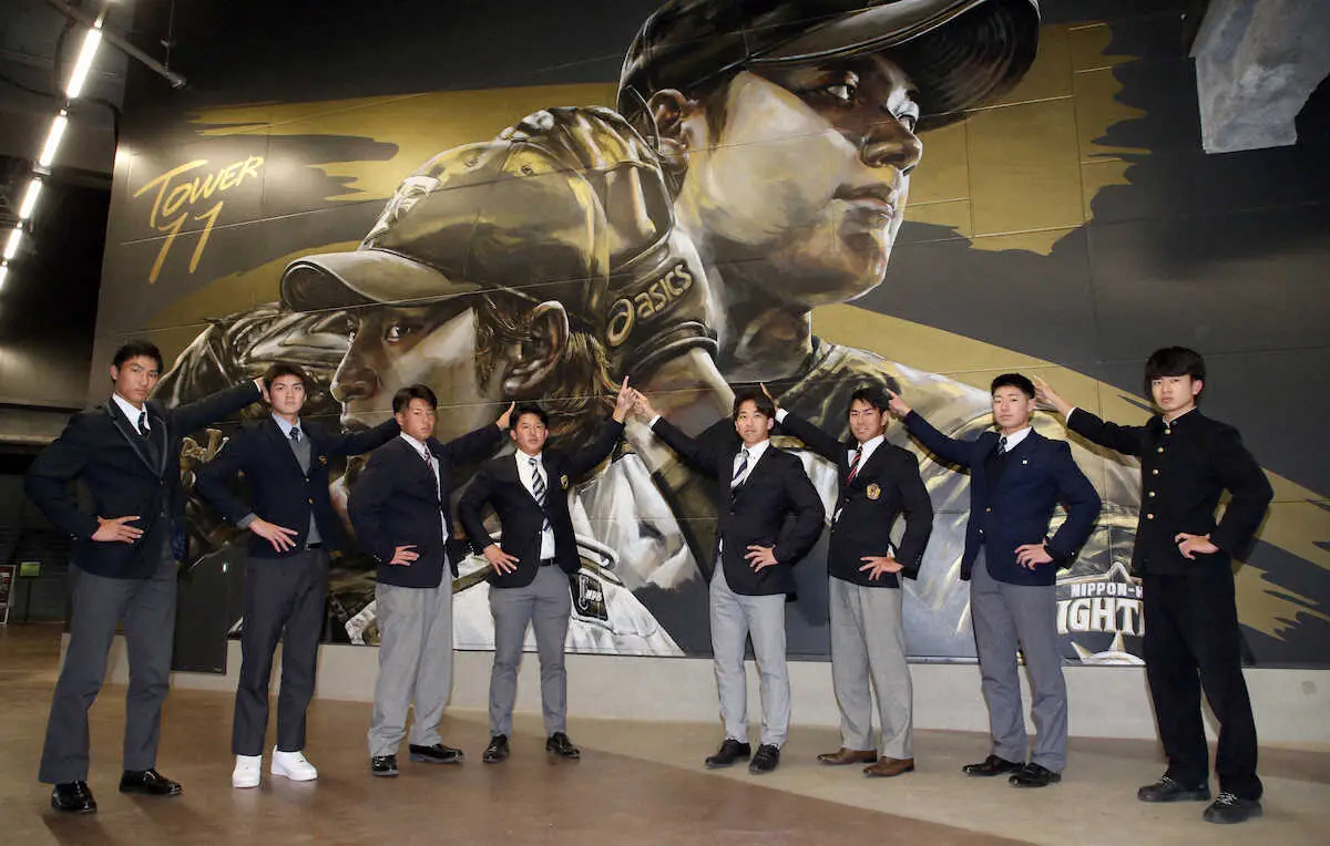 日本ハムの新人8選手がエスコンフィールド内を見学。