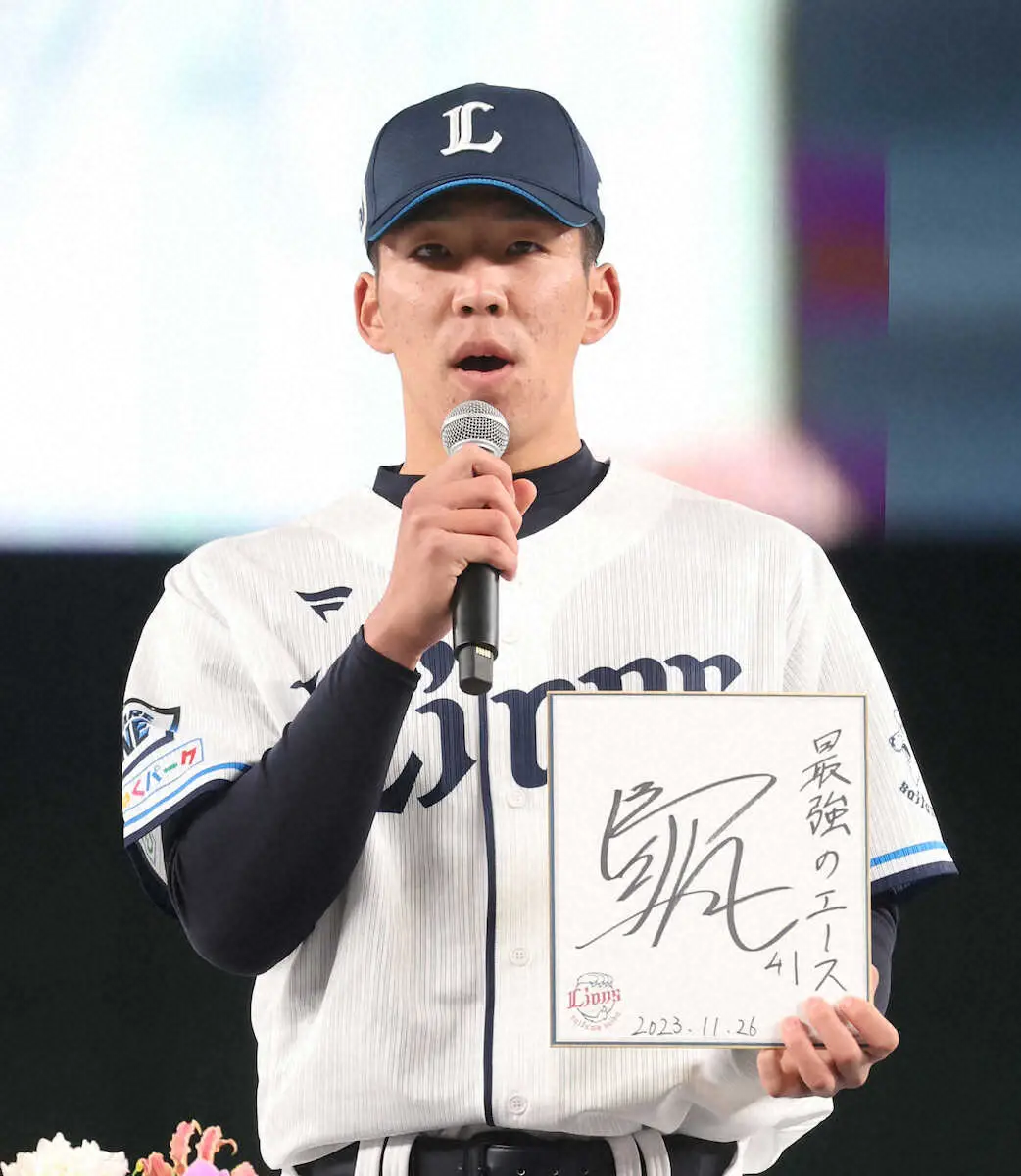 西武ドラフト4・成田晴風(はるせ)投手(17=弘前工)が26日、本拠地ベルーナドームで行われたファンフェスタ内で背番号41のユニホームを初披露し、早くも愛称を募集した。
