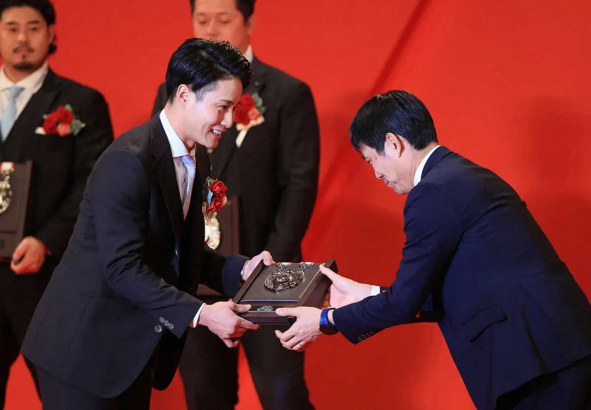プロ野球の年間表彰式「NPB AWARDS 2023 supported by リポビタンD」が28日、都内で行われ、5年目にして初タイトルとなるベストナインを獲得した阪神・木浪は、「今年チームに貢献できて、賞を頂けることはうれしい」と感慨に浸った。今年1月、鹿児島県徳之島で合同自主トレを行ったソフトバンク・近藤、広島からオリックスにFA移籍した西川の2人も参加。タイトルホルダーとしての再会を、心の底から楽しんだ。