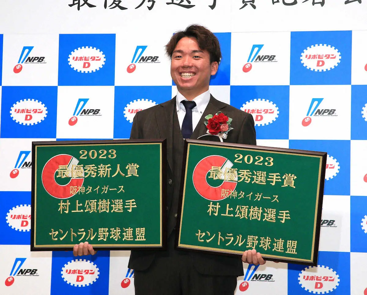 阪神・村上、年俸750万円MVP 平成以降最安、新人王とのW受賞で野茂以来33年ぶり史上3人目の快挙