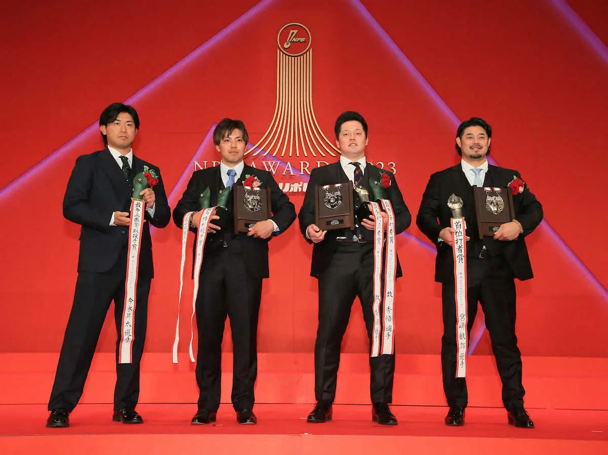 壇上では「防御率(のタイトル)も獲りたかったが、強敵(阪神・村上)がいた。来年は負けたくない」と意欲。
