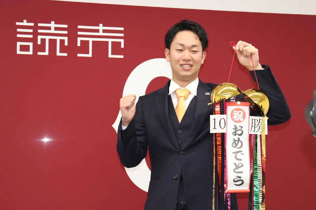 3年目で初の2桁10勝を挙げた巨人・山崎伊が、東京・大手町の球団事務所で契約更改交渉に臨み、2600万円増の年俸5100万円でサイン。「凄い評価していただいた」と笑顔を見せた。