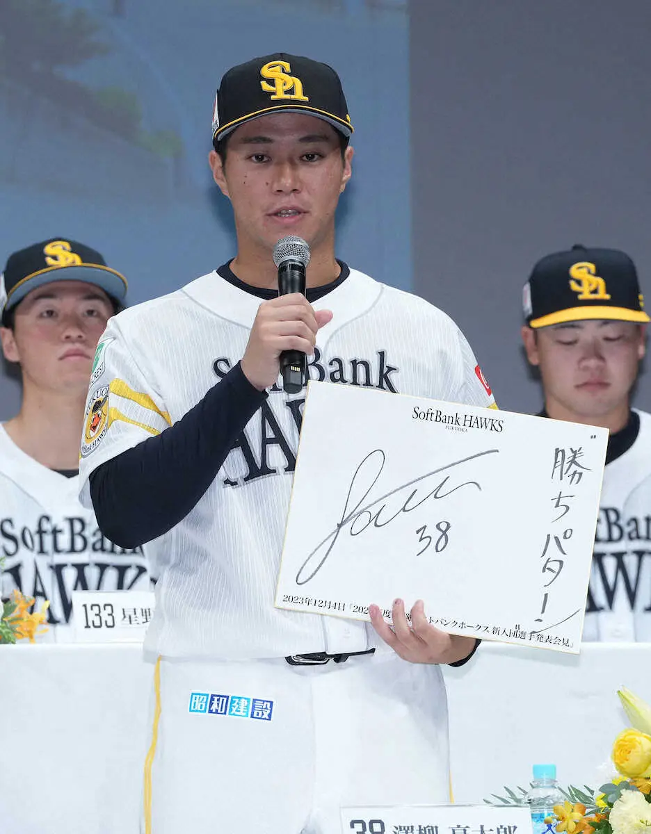 ソフトバンクは4日、福岡市内で育成を含む15選手の入団会見を開いた。ドラフト5位沢柳亮太郎(23=ロキテクノ富山)は鷹の鉄腕として勝ちパターン定着を狙う。