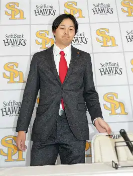 <ソフトバンク契約更改>アップ更改し笑顔で会見する川瀬(撮影・岡田 丈靖)