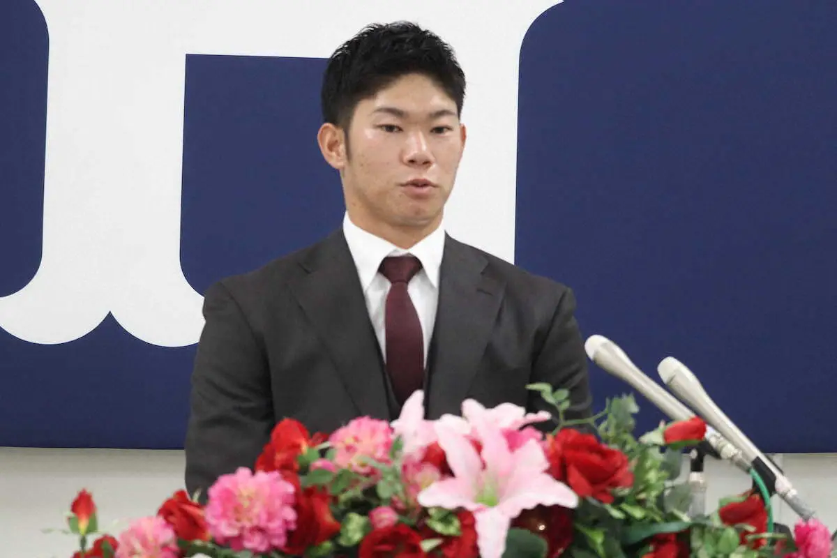 記者会見場に現れた坂倉は「たくさん評価してもらえた」と充実感をにじませた。今季から3000万円増の提示を受け、球団捕手では年齢、年数とも最速の大台到達となる年俸1億2500万円でサイン。3年ぶりに専念した捕手としての評価だった。