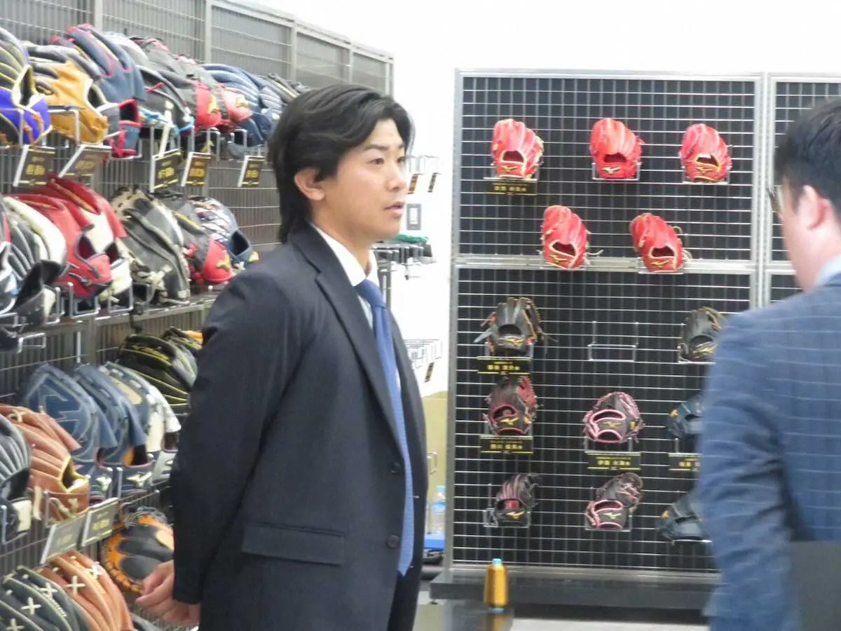同社が手がけるマットレスにも横になり感触を確かめた。「寝具はこだわっている。いろいろと紹介してくれるので選手としてはサポートしていただいて光栄」と長距離移動が続くタフなメジャーでの戦いを見据えた。
