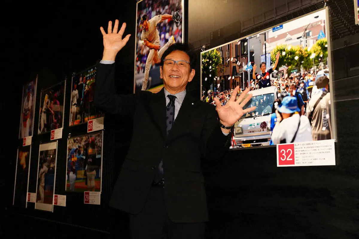 栗山英樹氏 野球報道写真展でWBC世界一のパレードポーズ再現「うれしいですね」
