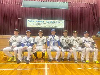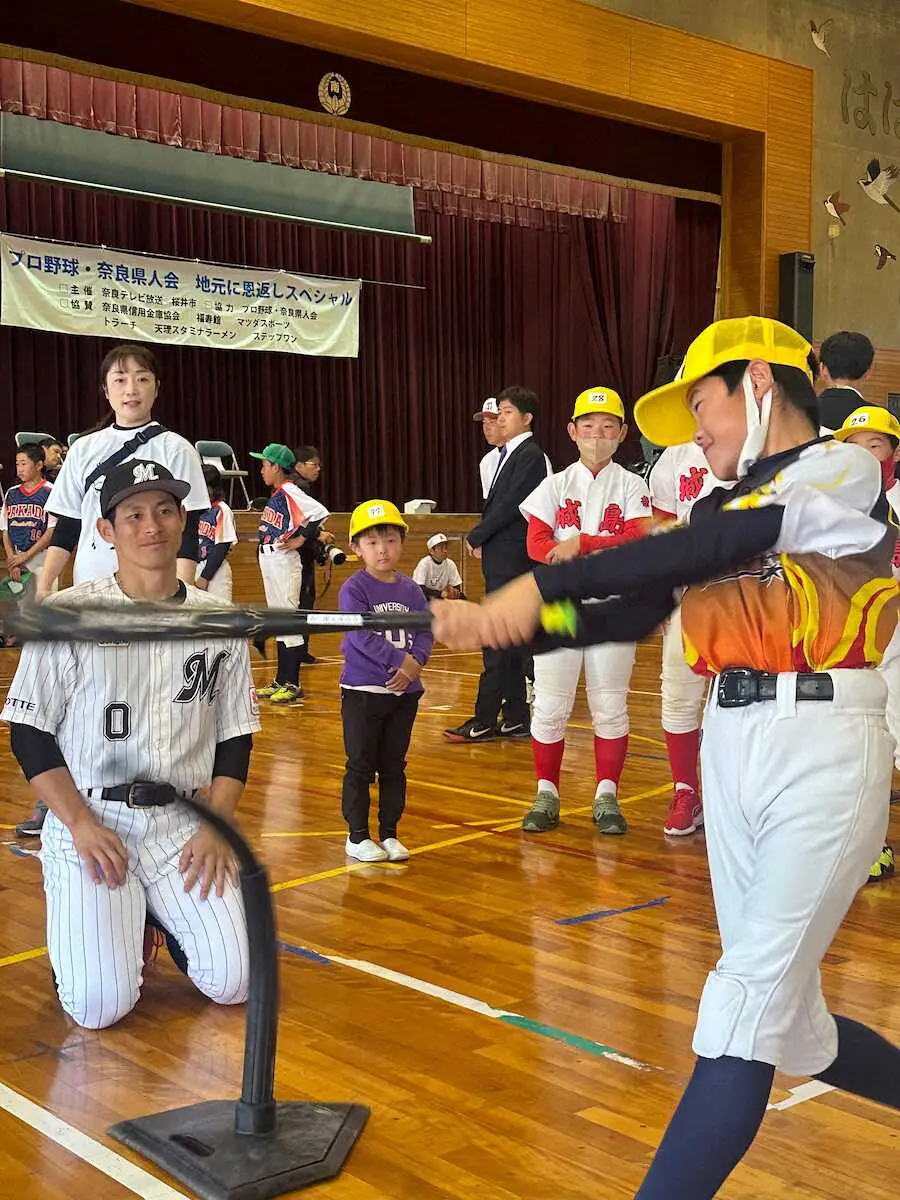 「プロ野球・奈良県人会」に参加したメンバー(左から)オリックス曽谷、DeNA西浦、ロッテ荻野、DeNA三浦監督。阪神島本、阪神・小野寺、ヤクルト大西 Photo by 提供写真 ロッテ荻野「プロ野球・奈良県人会」野球教室に参加「少年時の気持ちを思… ギャラリーで見る この記事のフォト 2023年12月10日の画像一覧 もっと見る 2023年12月10日の画像をもっと見る