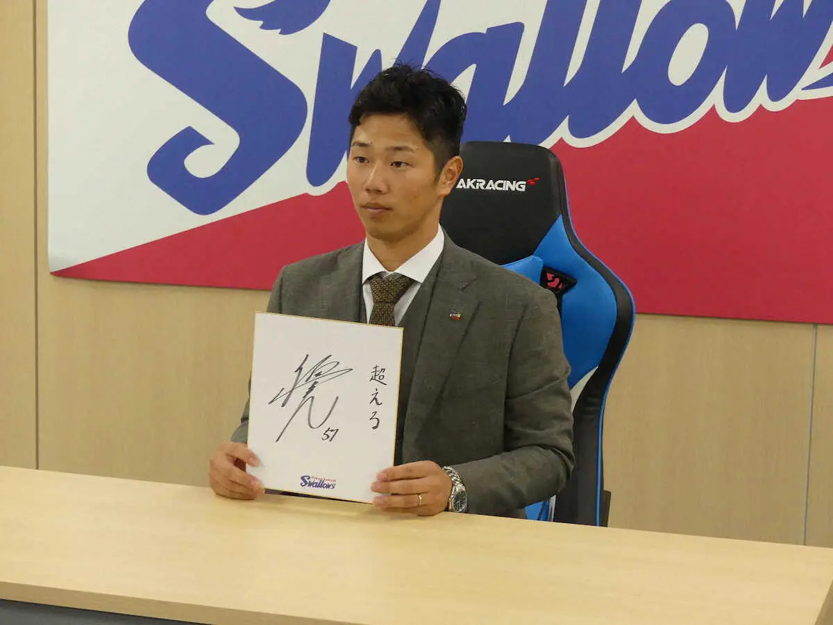 契約更改したヤクルト・古賀は色紙に「超える」と記した