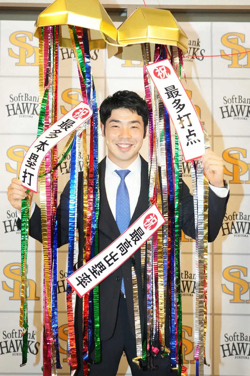 日本ハムからFA移籍1年目の今季は全試合に出場し、26本塁打、87打点で打撃2冠に輝き、打率・303はリーグ2位という好成績を残した。ほか、最高出塁率、ゴールデングラブ賞、ベストナインも獲得。「ここ数年取り組んできたことが形になった。来季は今季の数字を超えられるように」と話した。