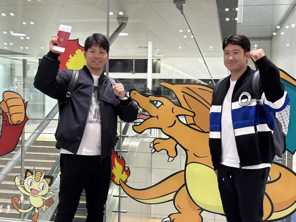 巨人の菅野智之投手(34)と大城卓三捕手(30)が15日、自主トレを行うハワイに向け成田空港から出発した。