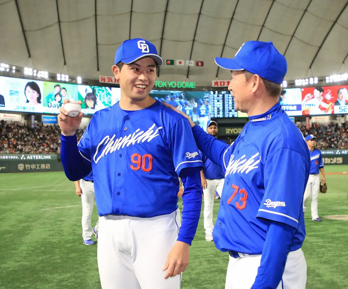 9月30日の巨人戦で勝利した松山晋也と立浪監督