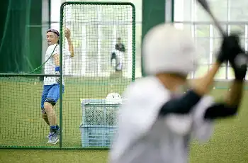 10球を投げて「体重が前に移動するよりも受けてしまっているね。もっと早く準備してごらん」。さらに1球ずつ「すり足の打ち方が邪魔している。安全にいこうとして思い切った動きがとれていない。足を上げて、あえて体重が前にいくイメージでやってみて」「ずいぶん良くなった。感覚はどう?」と問いかけながら投球。部員は「こっちの方が思い切りいけています」と手応えを得た様子だった。
