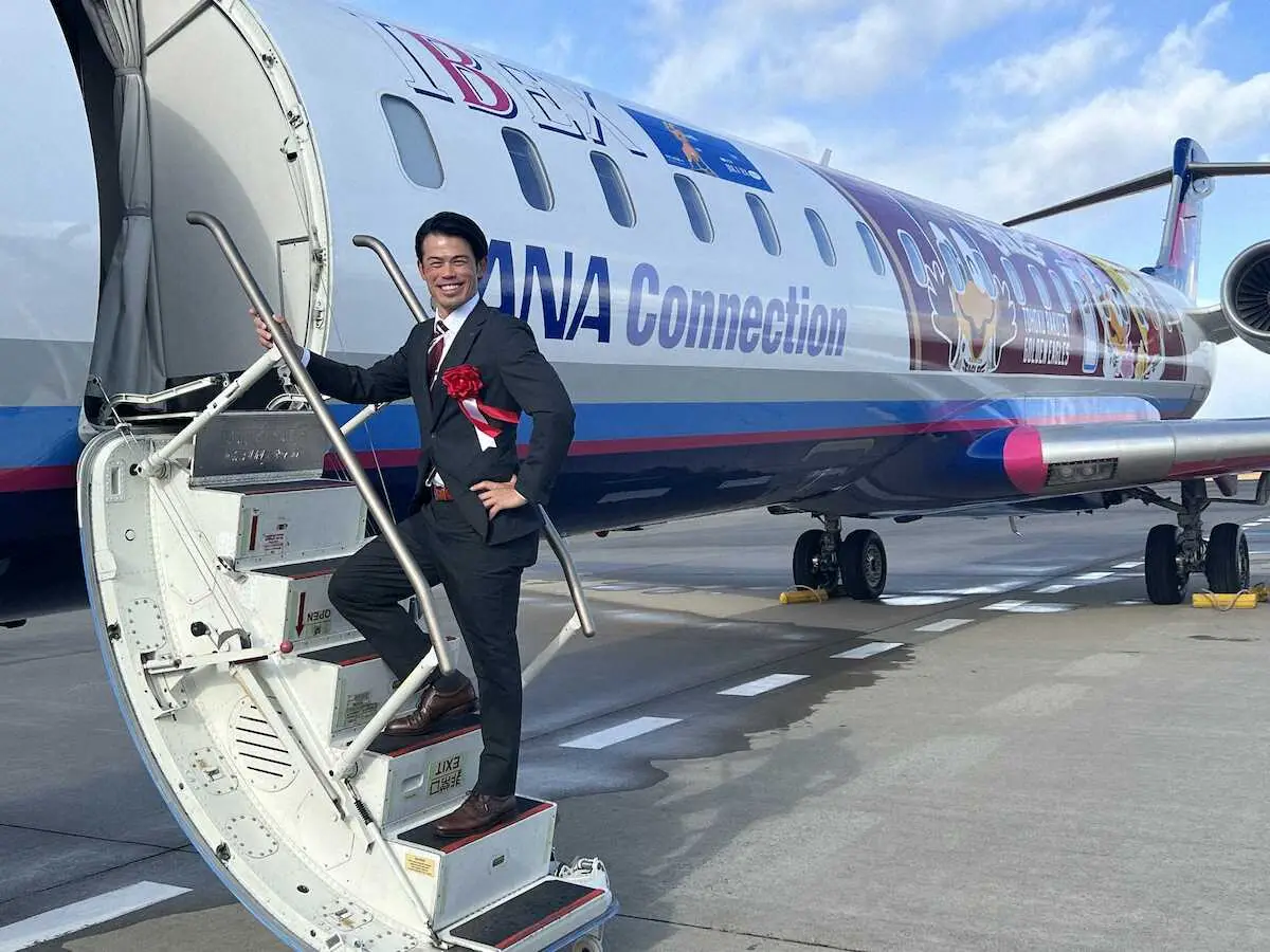 楽天の今江敏晃監督(40)が17日、仙台空港で行われたIBEXエアラインズ「新・楽天イーグルスジェット」就航記念セレモニーに出席。球団マスコットのクラッチらがデザインされた機体に搭乗し「チームとしても本当に嬉しく思いますし、皆さんのご支援があっての楽天イーグルス。しっかり結果で、恩返ししていきたい」と意気込んだ。