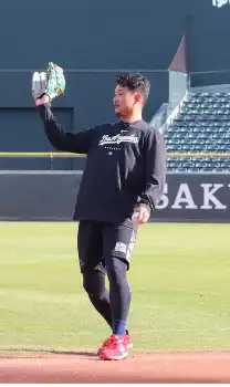 広島・森翔平も“翔タイム” 本家に「ちょっとあやかっています」 自主トレで着ていたパーカは…