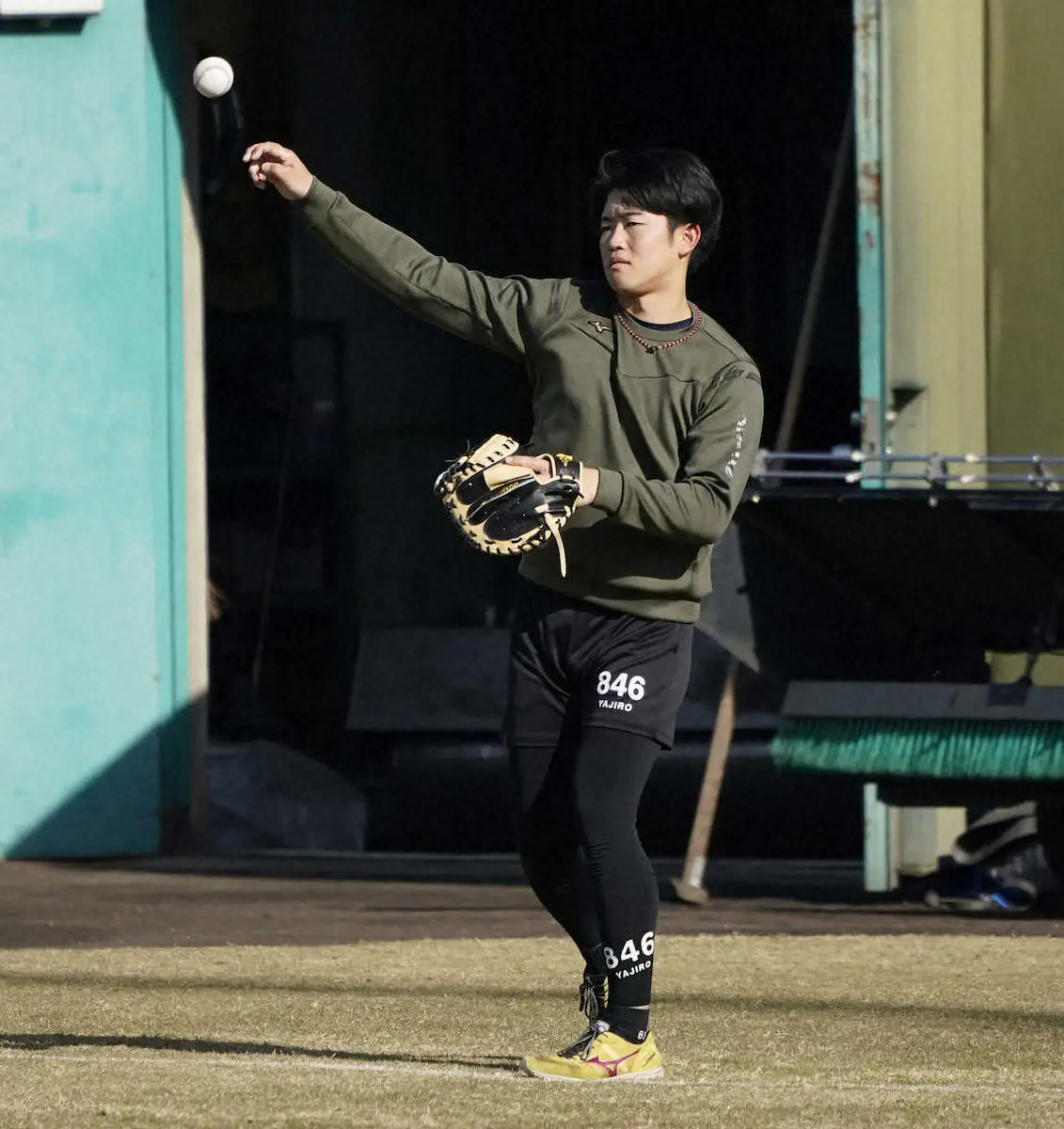 キャッチボールする阪神・中川(撮影・中辻 颯太)