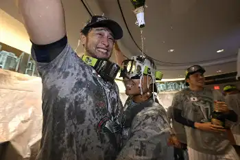 今年3月のワールド・ベースボール・クラシック(WBC)決勝で、大谷が当時エンゼルスの同僚だった米国代表のマイク・トラウトを空振り三振に打ち取り、14年ぶりの世界一を勝ち取った瞬間にバッテリーを組んでいた中村。