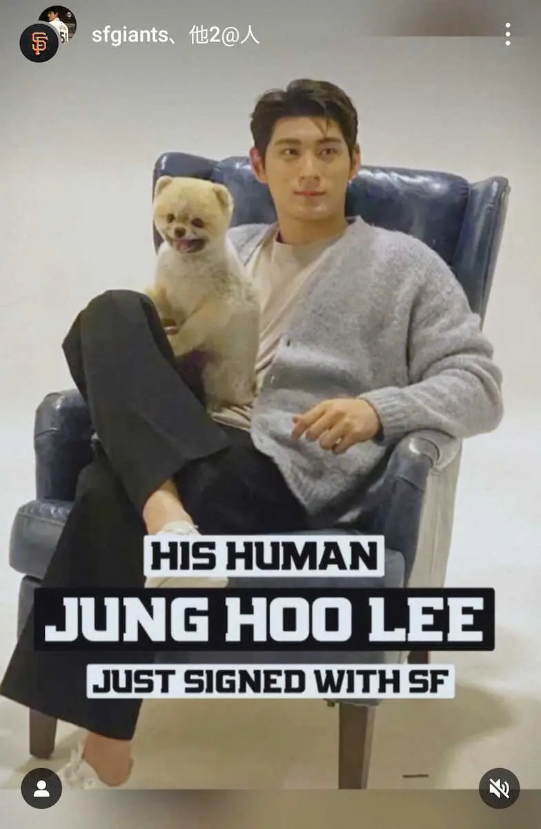 ドジャース・大谷の愛犬「デコピン」に対抗?ジャイアンツの李政厚(イ・ジョンフ)が自身のインスタグラムに愛犬の写真をアップした。名前は「カオ(KAO)」で優しく抱きかかえているツーショットなどの写真を公開。