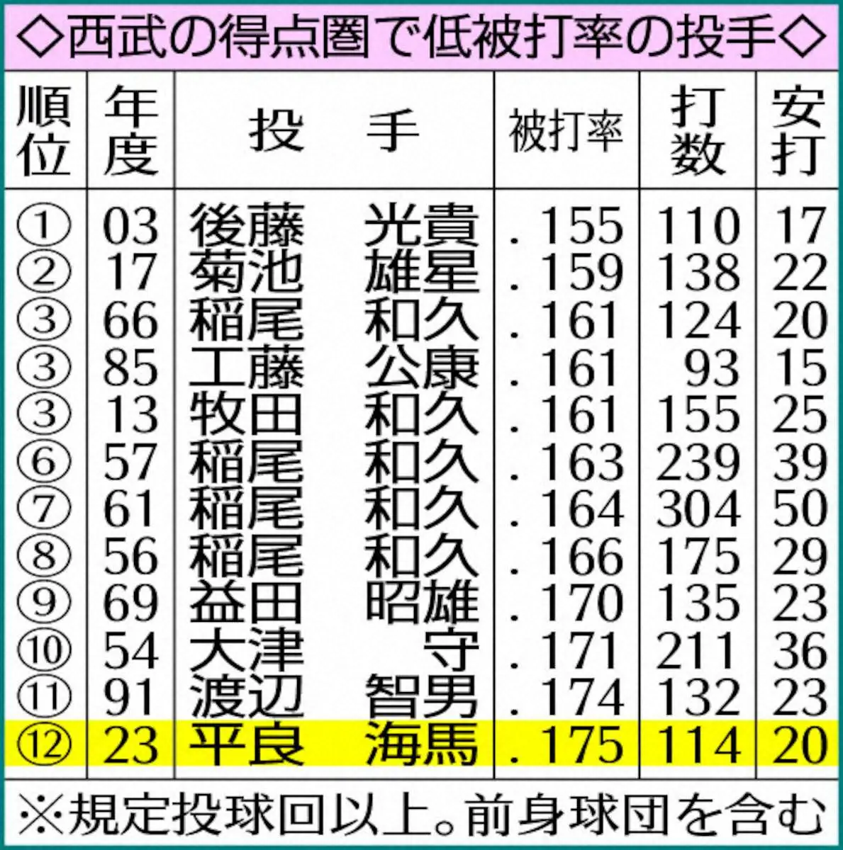 シーズン暴投0で奪三振率8.00以上の投手 Photo by スポニチ 西武・平良 史上2人目“華麗なる転身” 最優秀中継ぎの翌年に先発で2桁勝利 ギャラリーで見る この記事のフォト 2023年12月21日の画像一覧 もっと見る 2023年12月21日の画像をもっと見る