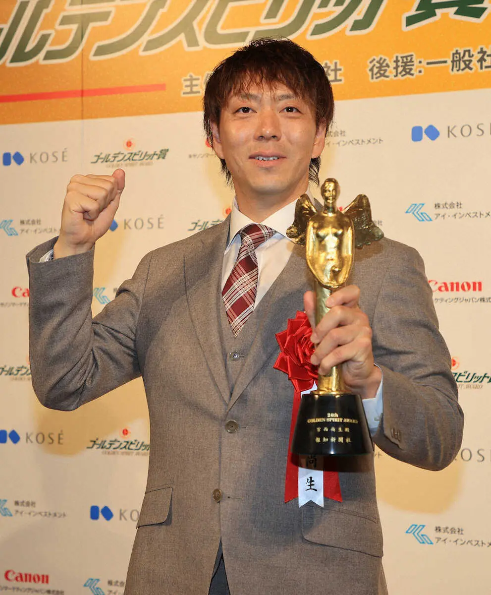 <ゴールデンスピリット賞表彰式>ゴールデンスピリット賞を受賞した宮西(撮影・篠原岳夫)