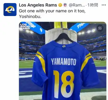 ラムズのX(@RamsNFL)から ドジャース入り山本由伸の「18」ユニ 大谷翔平が観戦したNFLチームが早速… ギャラリーで見る この記事のフォト 2023年12月22日の画像一覧 もっと見る 2023年12月22日の画像をもっと見る
