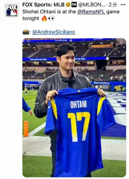 FOX Sportsも「大谷翔平は今夜、ラムズの試合にいます」と記し、大谷が背番号「17」のラムズのユニホームを持ち笑みを浮かべる写真を投稿した。