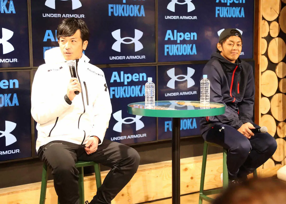 ソフトバンクの今宮健太内野手(32)が22日、球団OBの松田宣浩氏(40)と福岡市の商業施設で行われたアンダーアーマーのトークショーに出演した。