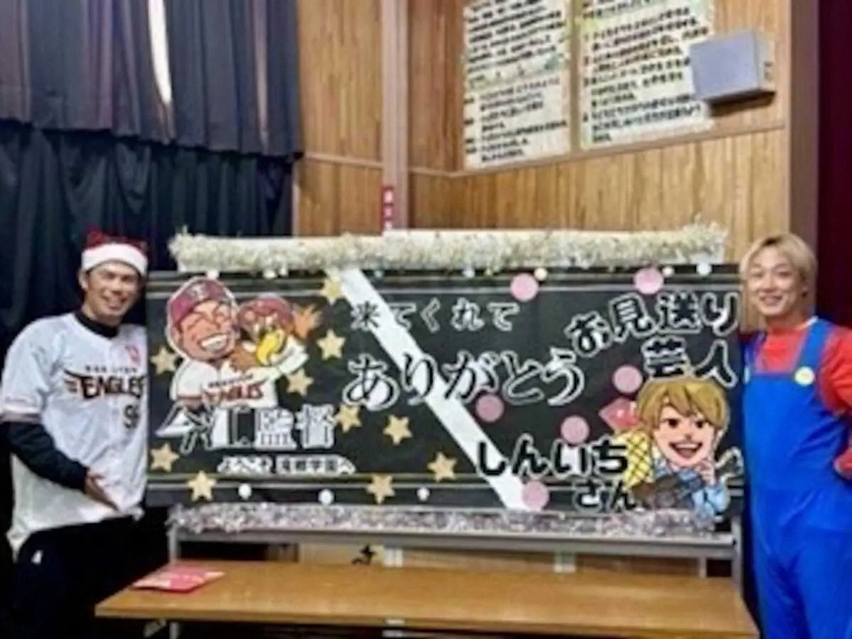 児童養護施設を訪問した楽天・今江監督とお見送り芸人しんいち Photo by 提供写真 楽天・今江監督が児童養護施施設を訪問 お見送り芸人しんいちも参加して… ギャラリーで見る この記事のフォト 2023年12月23日の画像一覧 もっと見る 2023年12月23日の画像をもっと見る