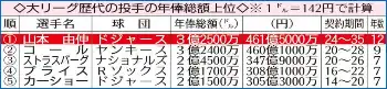 ≪「2種類のオプトアウト」後払いは含まれず≫山本の契約詳細について、スポーツ専門局ESPNは「後払いは含まれない」と伝えた。12年総額3億2500万ドル(約461億5000万円)のうち、5000万ドル(約71億円)が契約金。オリックスへの譲渡金は5062万5000ドル(約72億円)になる。また同局のジェフ・パッサン記者は「2種類のオプトアウト条項が含まれた」と伝え、12年間の契約年数内に何らかの条件で契約破棄や見直しができる条項が加えられた可能性がある。